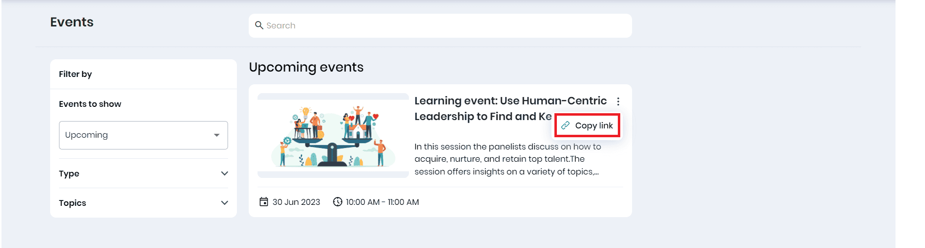 Click on the three dots to copy the event URL. You can share it with your colleagues through chat/email if required.