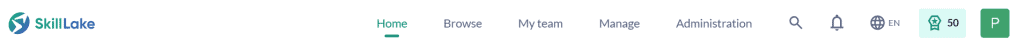 The learners can view the Learning Credits in the top menu if the leaderboard is enabled in their Skill Lake Application. By hovering over or clicking on the learning credits, they can see their rank at both the organizational level and within their group. Clicking on their rank will navigate them to the respective leaderboards.